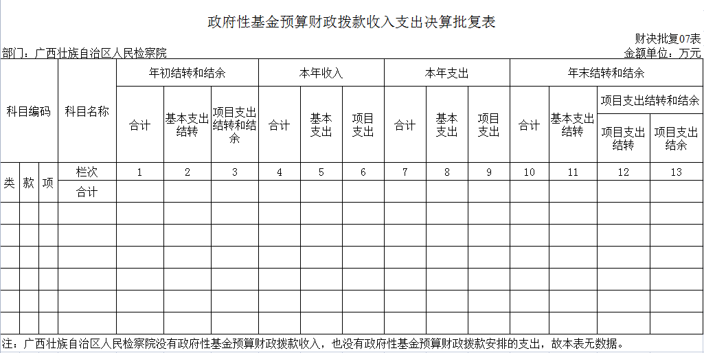 广西壮族自治区人民检察院2020年度政府性基金支出0万元。