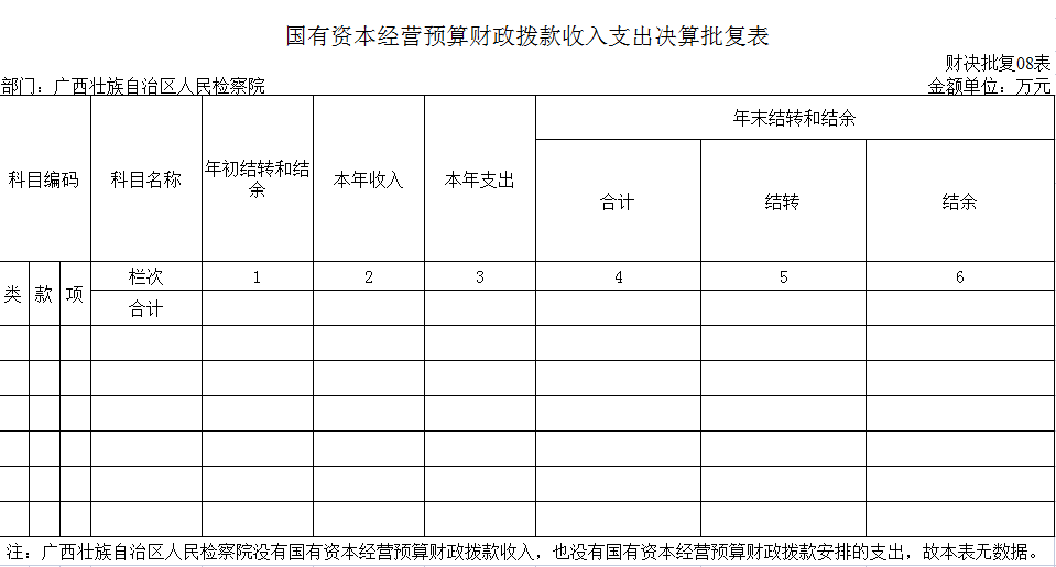 广西壮族自治区人民检察院2020年度国有资本经营预算支出0万元。
