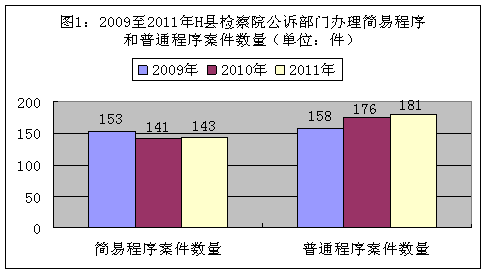 本调研报告选取H县检察院公诉科2009年至2011年办理的普通程序、简易程序案件进行调查,具体分为三个方面: