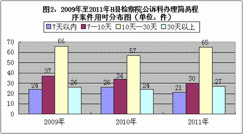 表3:2009年至2011年H县检察院公诉科办理简易程序案件用时表(单位:件)