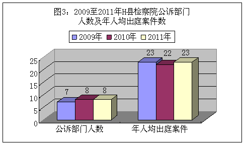 表6:2009年至2011年H县检察院公诉科所有案件出庭支持公诉统计表