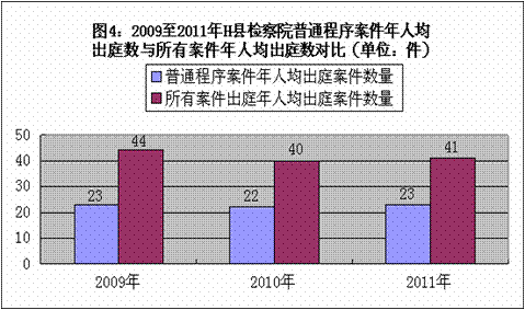 表4:2009年至2011年H县检察院公诉科普通程序案件出庭支持公诉统计表